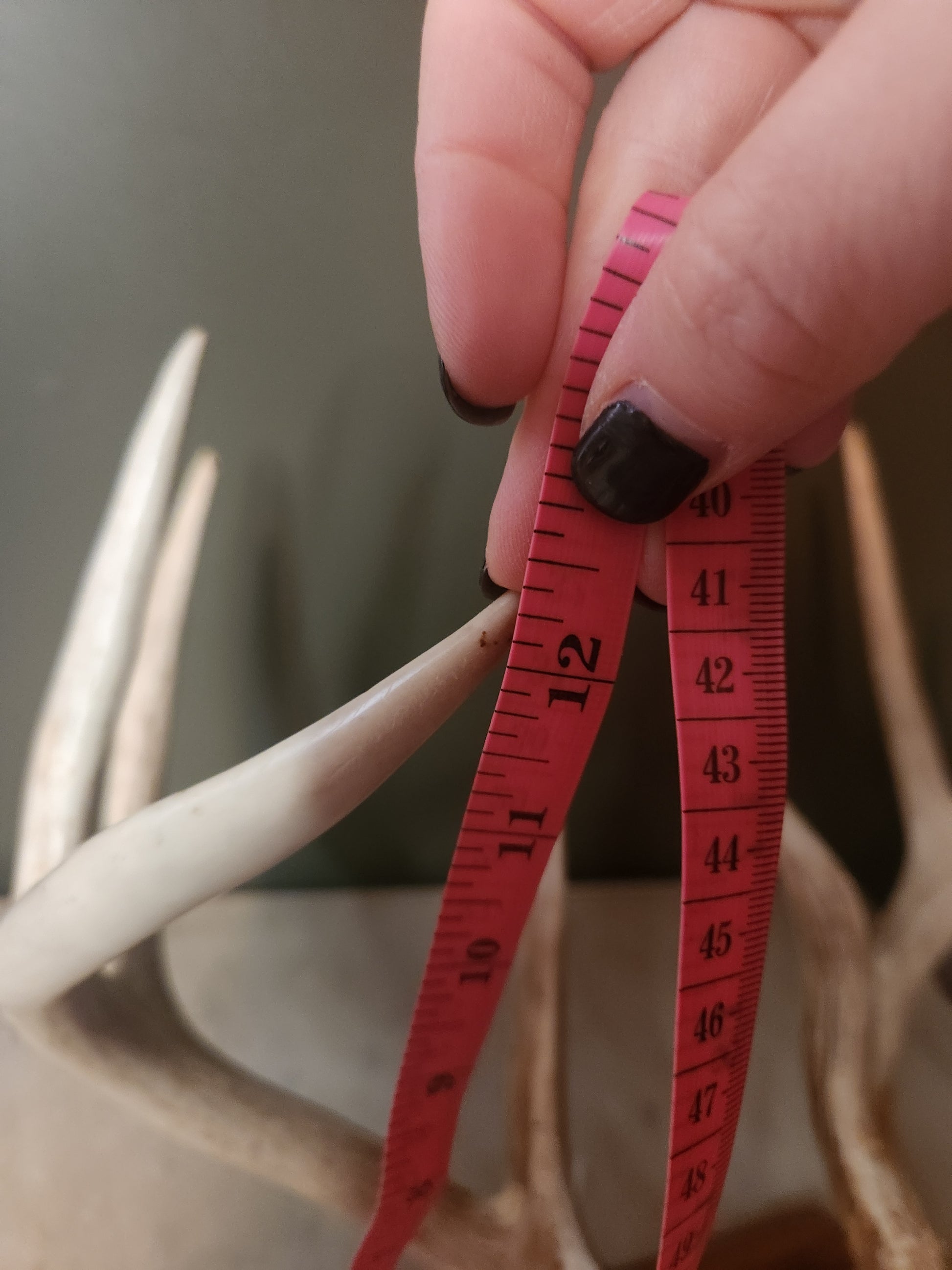 A stunning set of 8 point antlers mounted and leather wrapped. This large set measures approximately 17x17" and stands about 12.5" from wall.