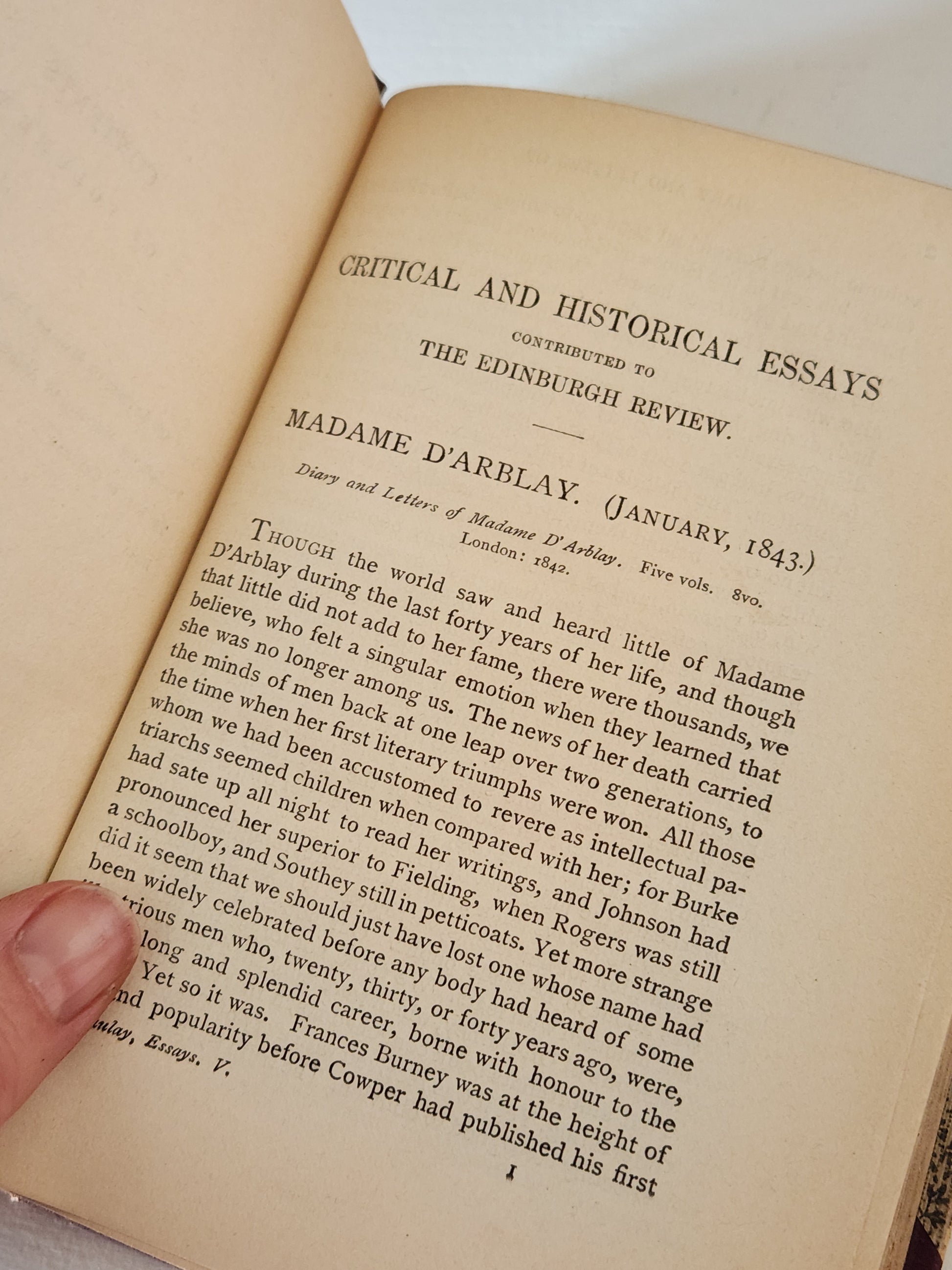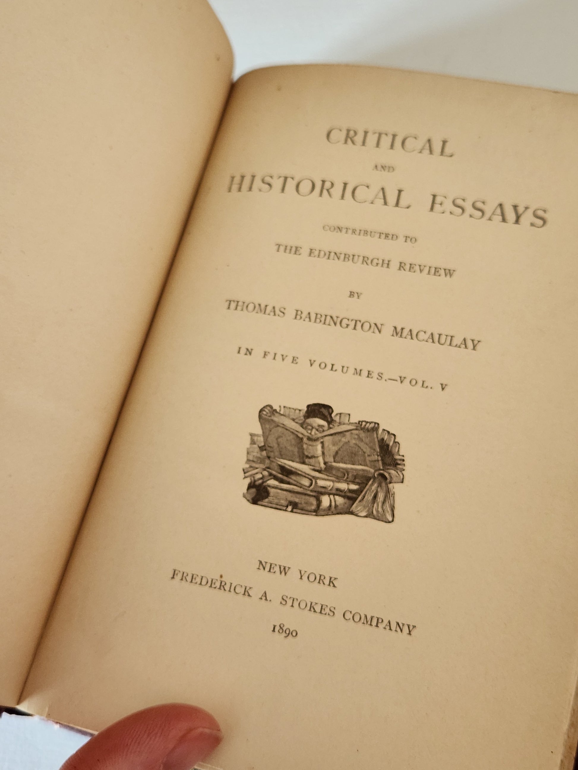 Critical and Historical Essays: Contributed to the Edinburgh Review (1843) is a collection of articles by Thomas Babington Macaulay, later Lord Macaulay. They have been acclaimed for their readability, but criticized for their inflexible attachment to the attitudes of the Whig school of history.